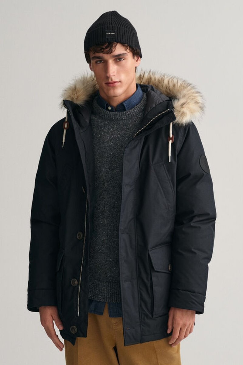 Parka regular à capuche amovible à manches longues.
