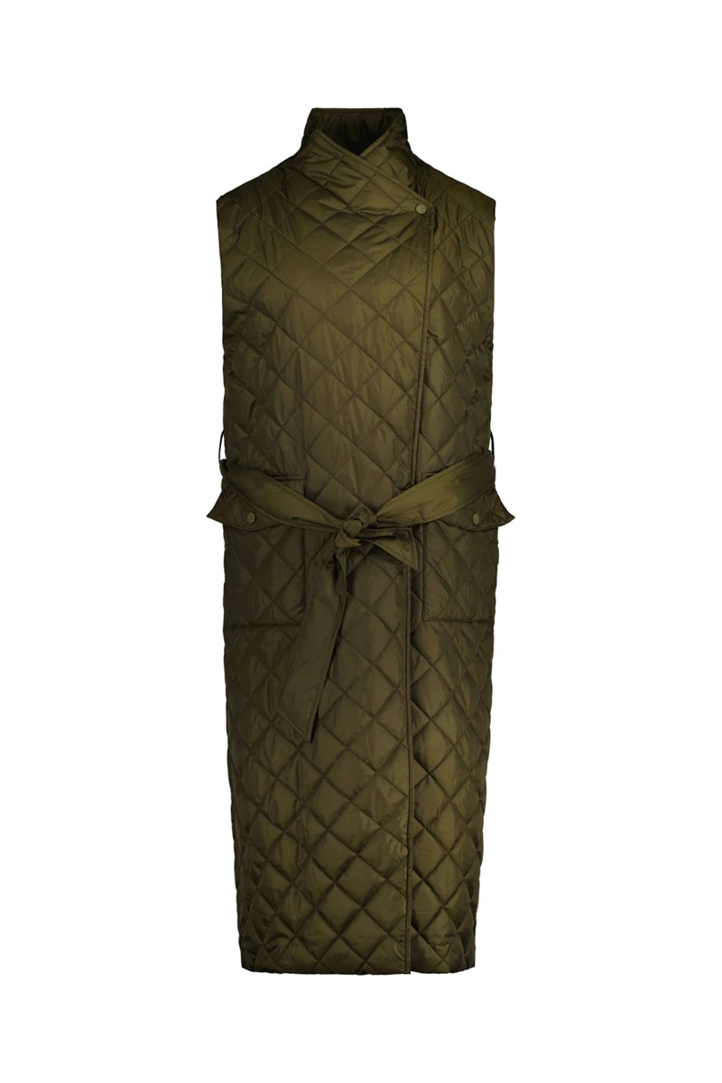 Doudoune longue relaxed sans manches - Kaki