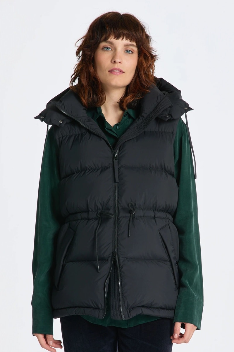 Doudoune à capuche amovible sans manches.