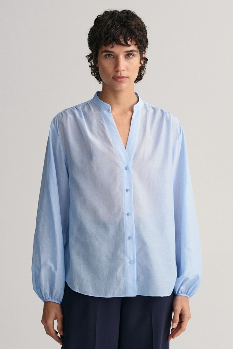Chemisier relaxed en soie mélangée à manches longues avec fronces et liserés.