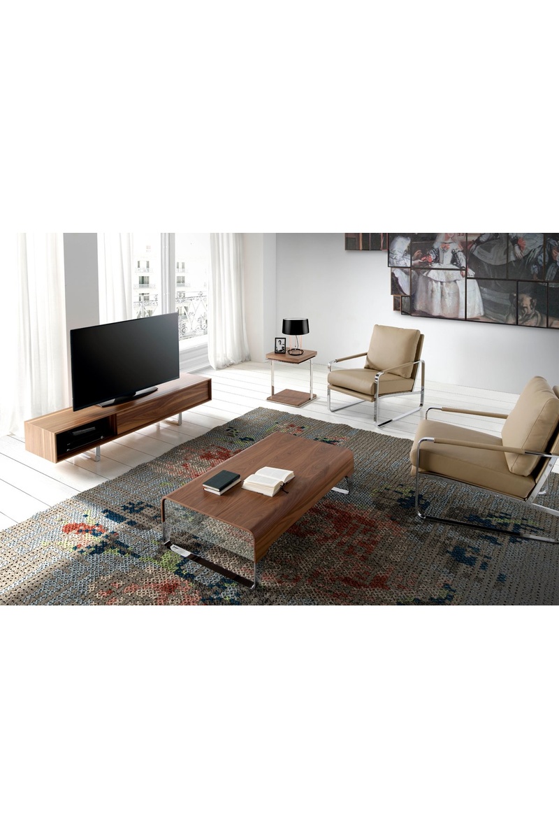 Plateau en MDF plaqué noyer.