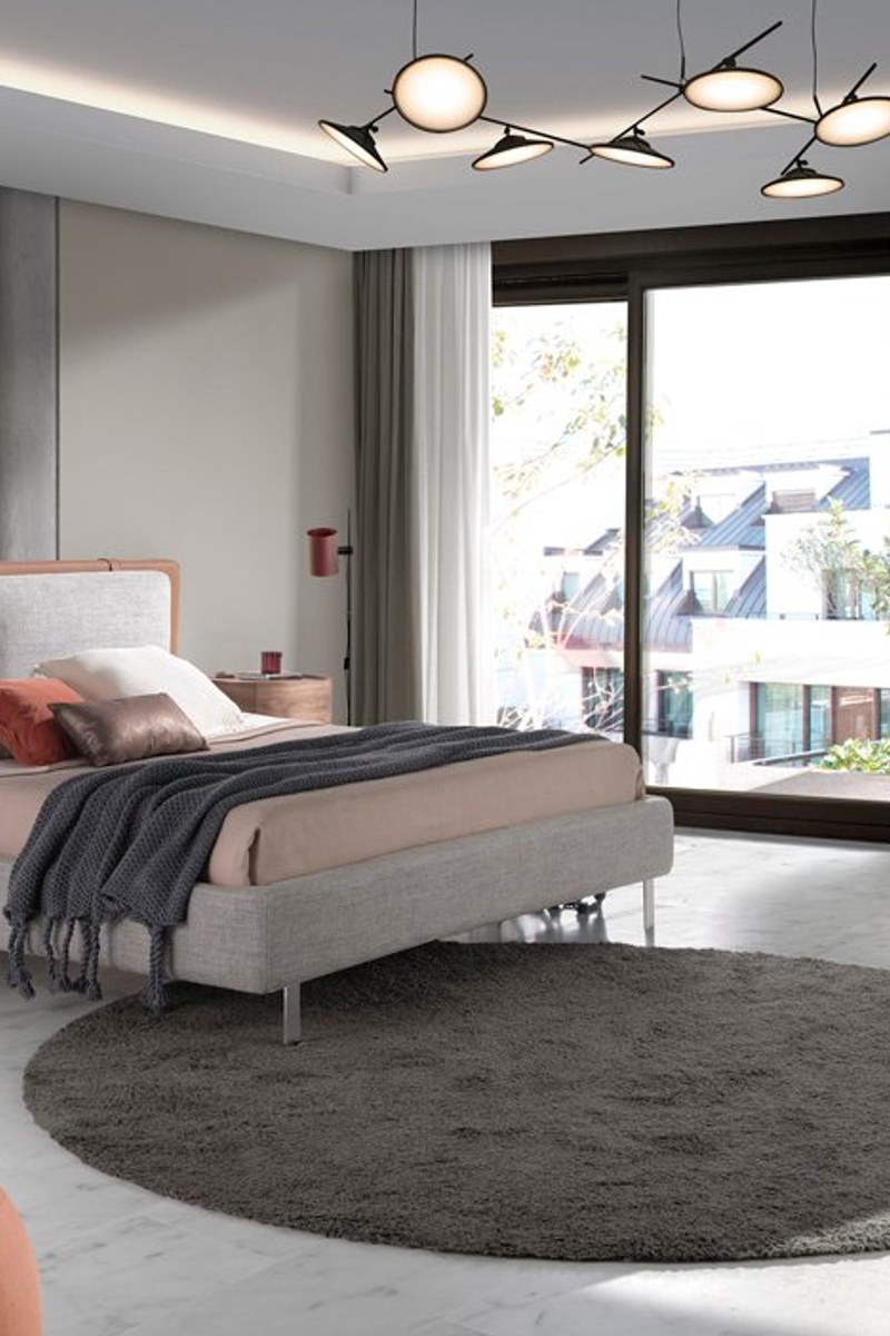 Tête de lit rembourrée en mousse polyuréthane 25 kg/m³.
