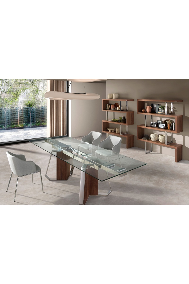 Pieds en noyer et acier inoxydable chromé.