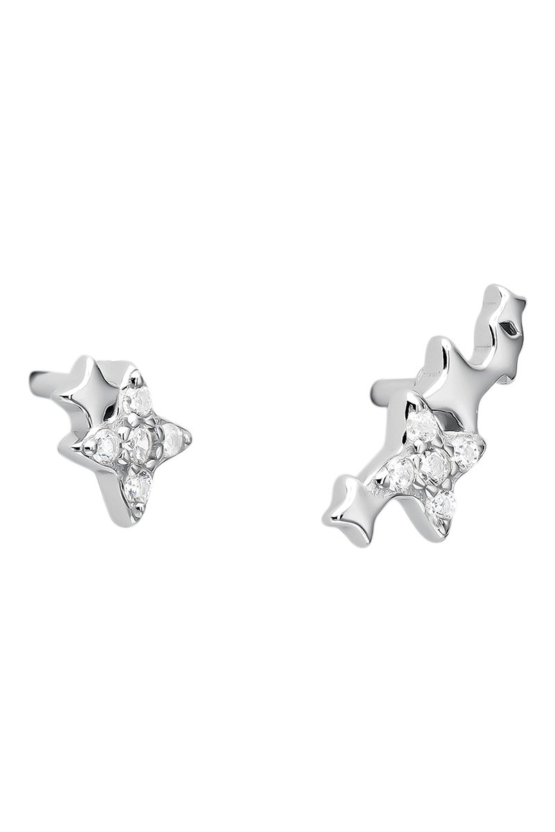 Puces dépareillées en argent serties de 10 zircones cubiques.