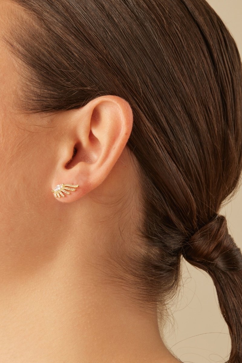 Puces en argent plaqué or jaune serties de zircones cubiques.