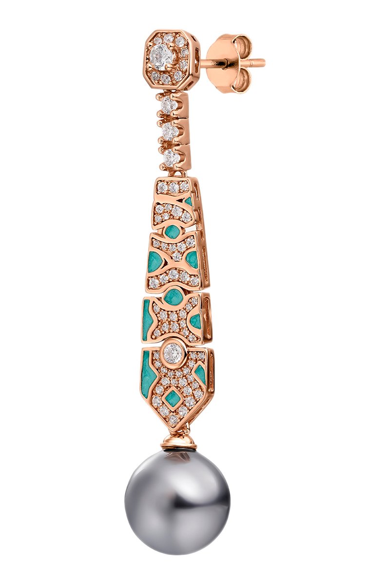 Matière : métal et argent 925/1000 plaqué or rose 18 carats, zirconiums, perle d’imitation et émail