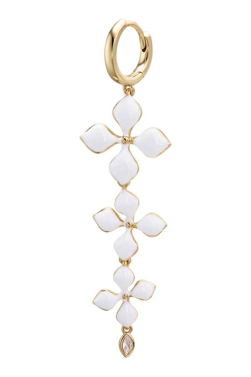 Boucle d'oreille pendante en argent plaqué or jaune sertie d'émail et d'un zirconium.