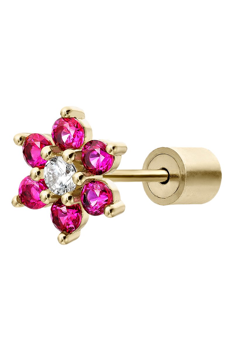 Piercing en argent plaqué or jaune serti de 6 corindons et d'une zircone cubique.