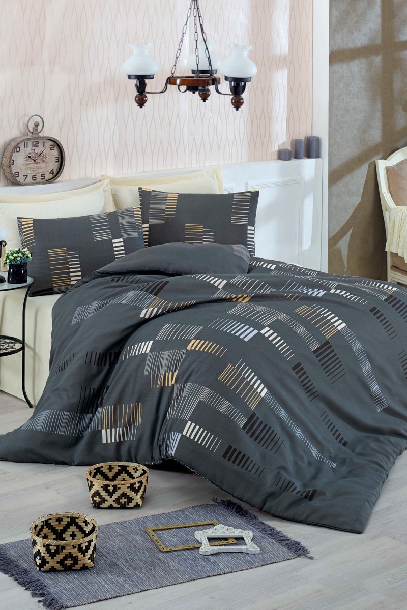 Parure de couette en coton 48 fils/cm² Trace - Anthracite