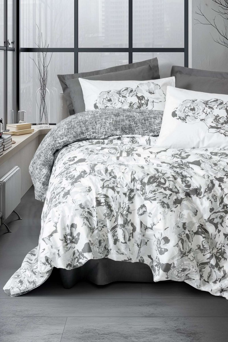 Parure de couette réversible en coton - 57 fils/cm² Florva - Anthracite