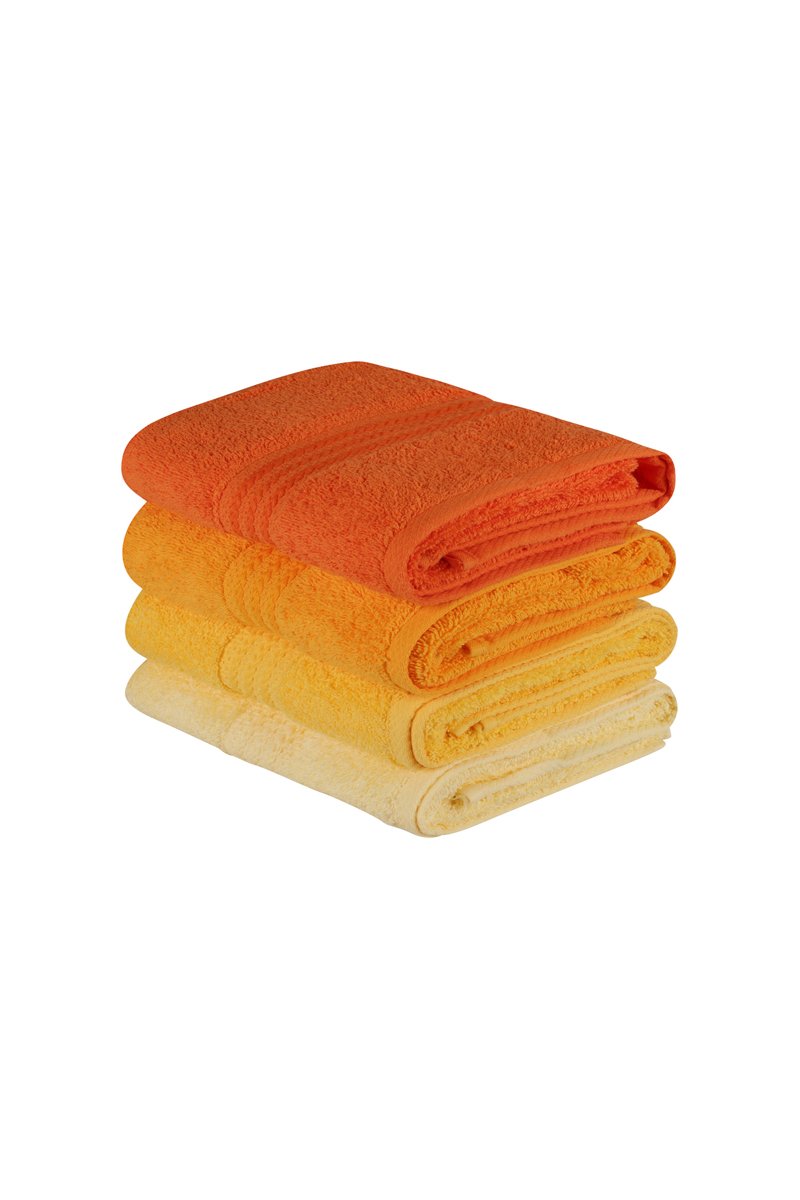 4 serviettes de toilette - Orange et jaune - 50 x 90 cm