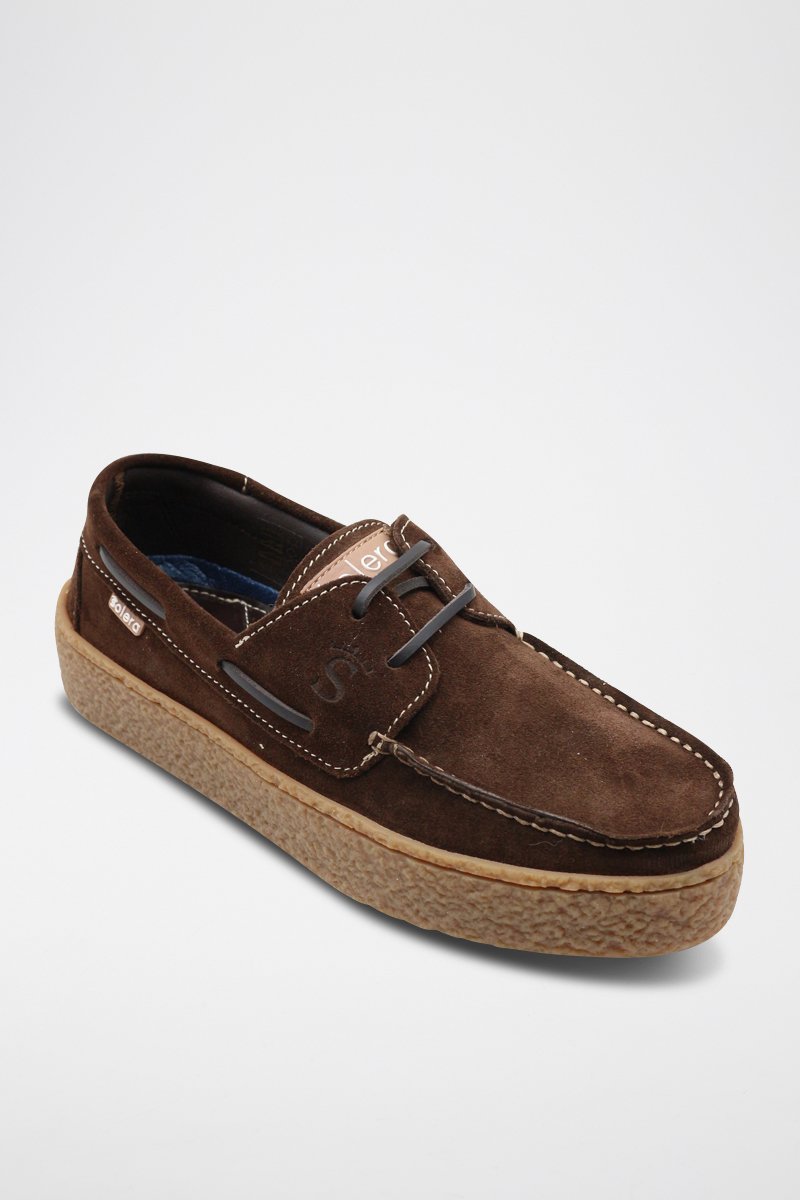 Chaussures bateau compensées en cuir - Marron