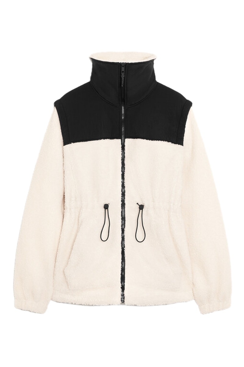 Veste en fourrure synthétique à manches longues élastiques.
