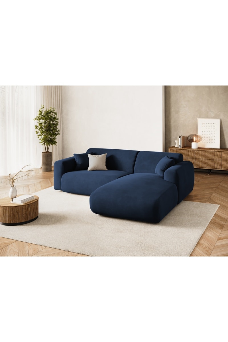 Canapé d'angle droit Nolio - Bleu marine - 4 places - En tissu velours