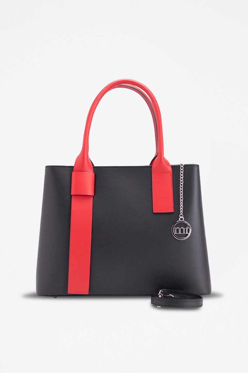 Sac à main en cuir Argonne - Noir et rouge