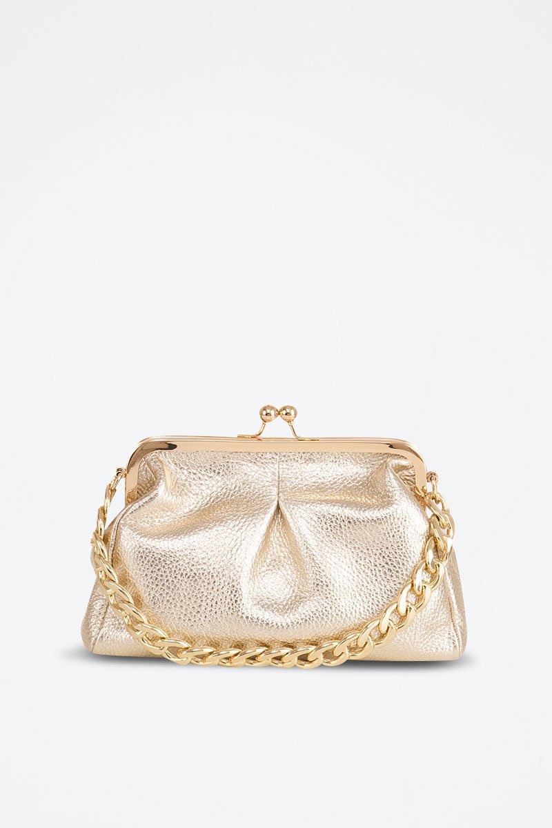 Bandoulière chaînette amovible et réglable de 120 cm pour porter la pochette comme sac bandoulière.