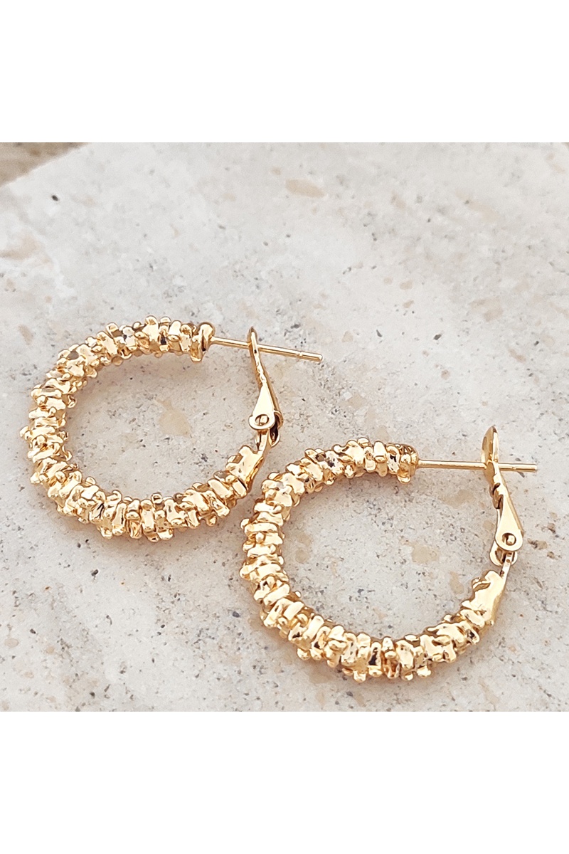 Craquez pour ces créoles en laiton plaqué or, au motif délicatement travaillé ! Elles ajoutent une touche sophistiquée à votre tenue.