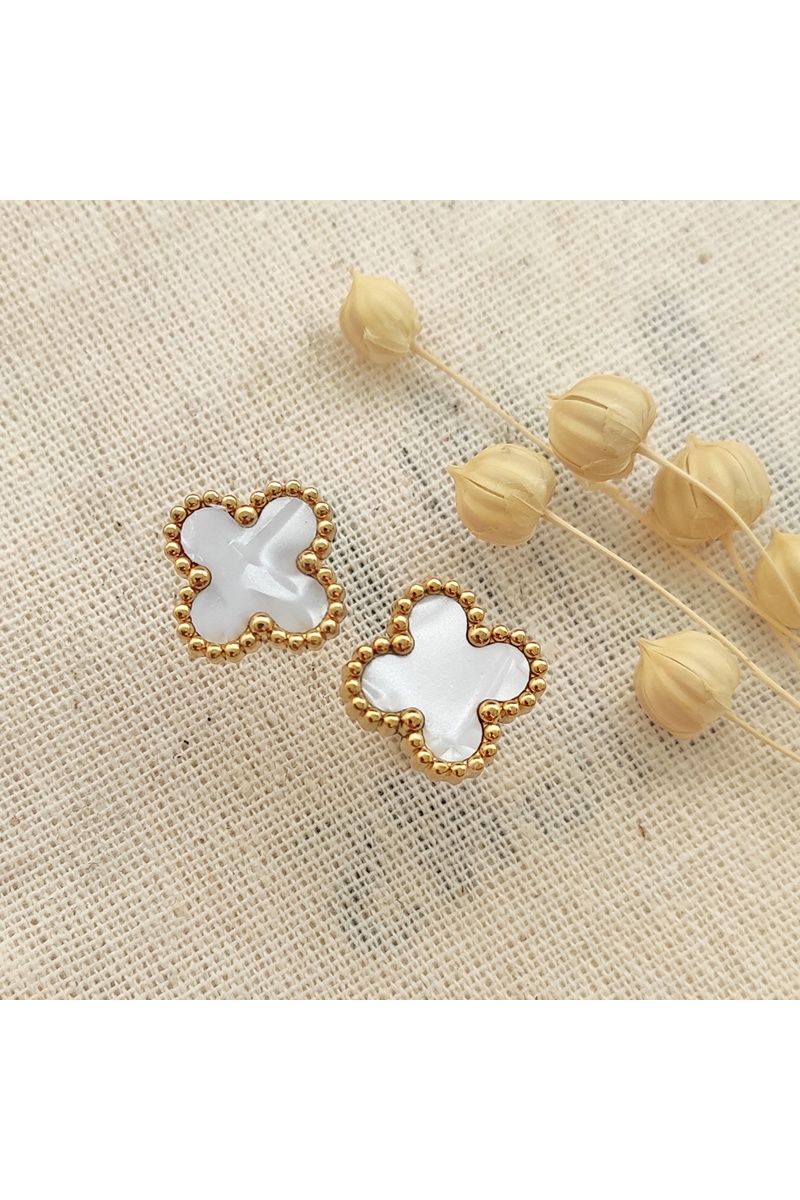 Boucles d'oreilles trèfle - Laiton plaqué or & nacre
