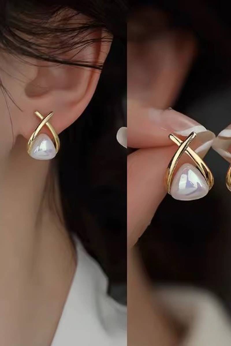 Puces en plaqué or jaune serties d'une perle d'imitation.