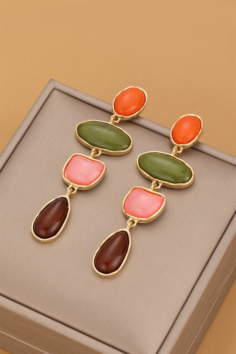Boucles d'oreilles pendantes en plaqué or jaune serties de cristaux.