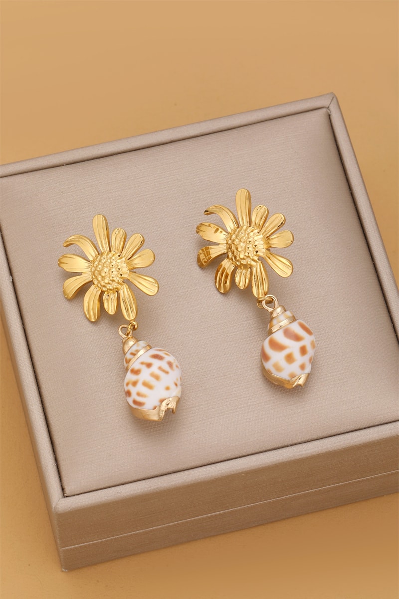Boucles d'oreilles pendantes en plaqué or jaune serties de cristaux.