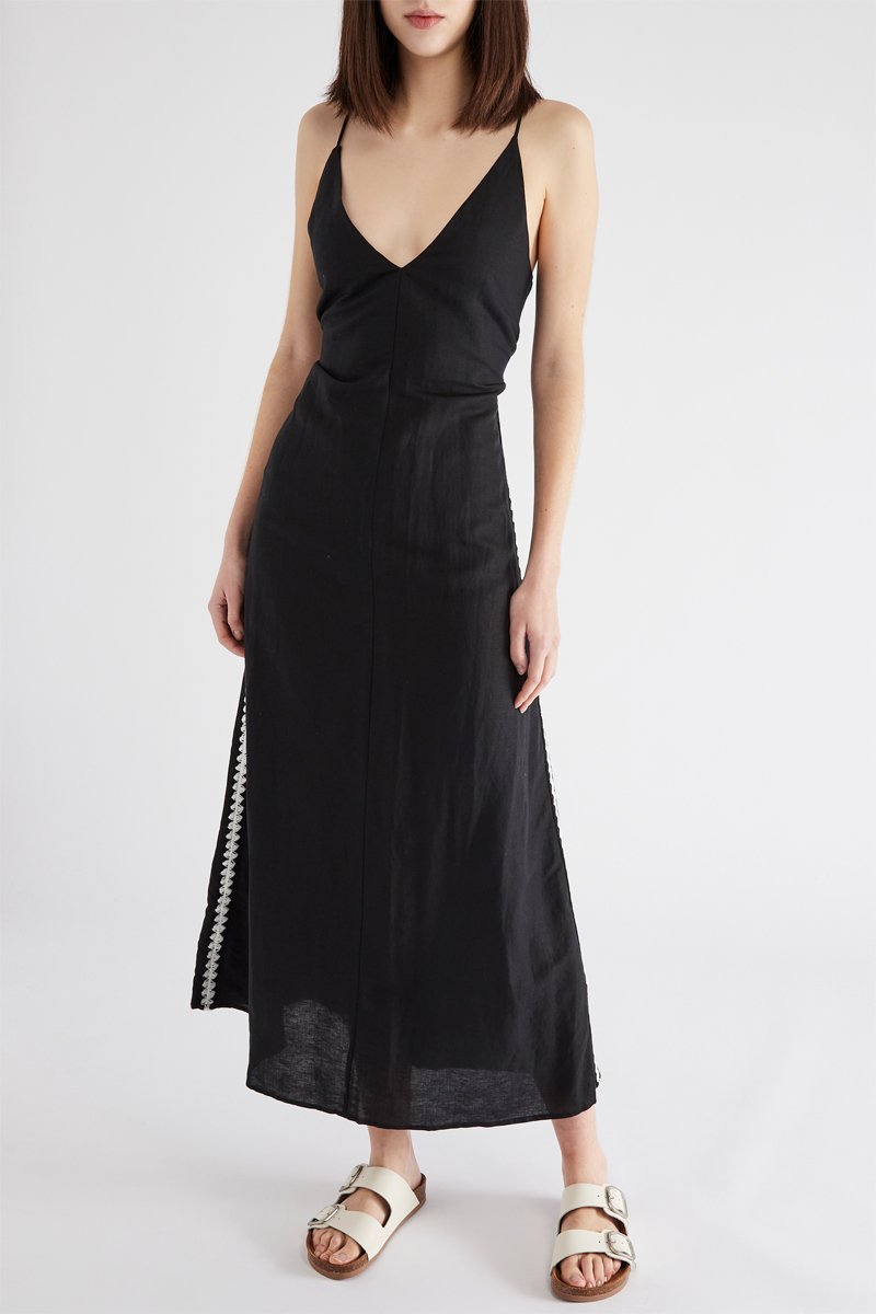 Robe longue en lin - Noir