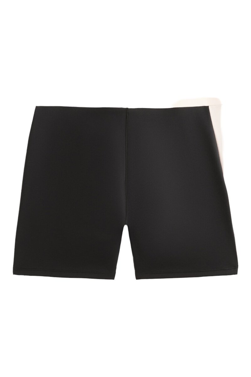 Empiècements contrastants à la taille et sur les côtés.