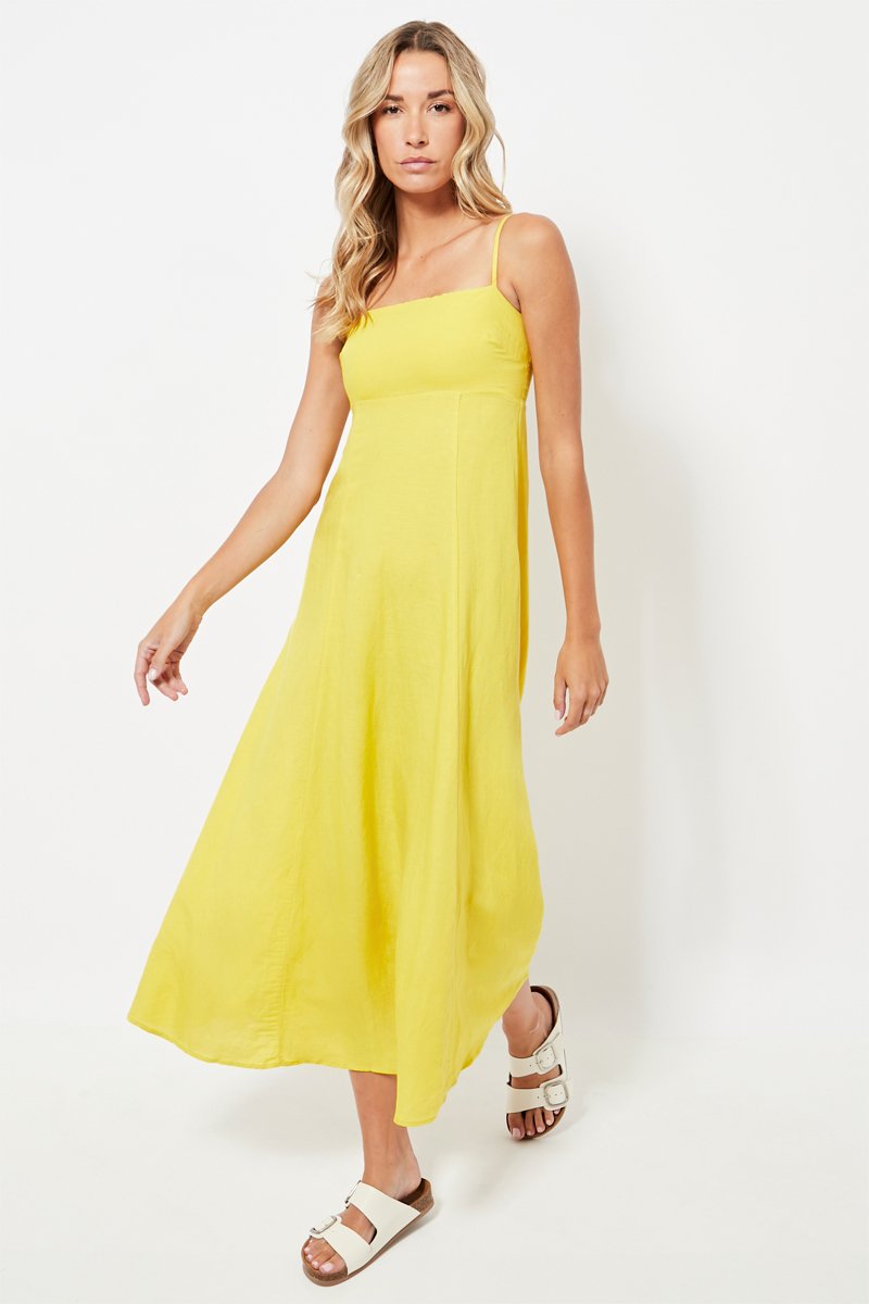 Robe midi en lin - Jaune