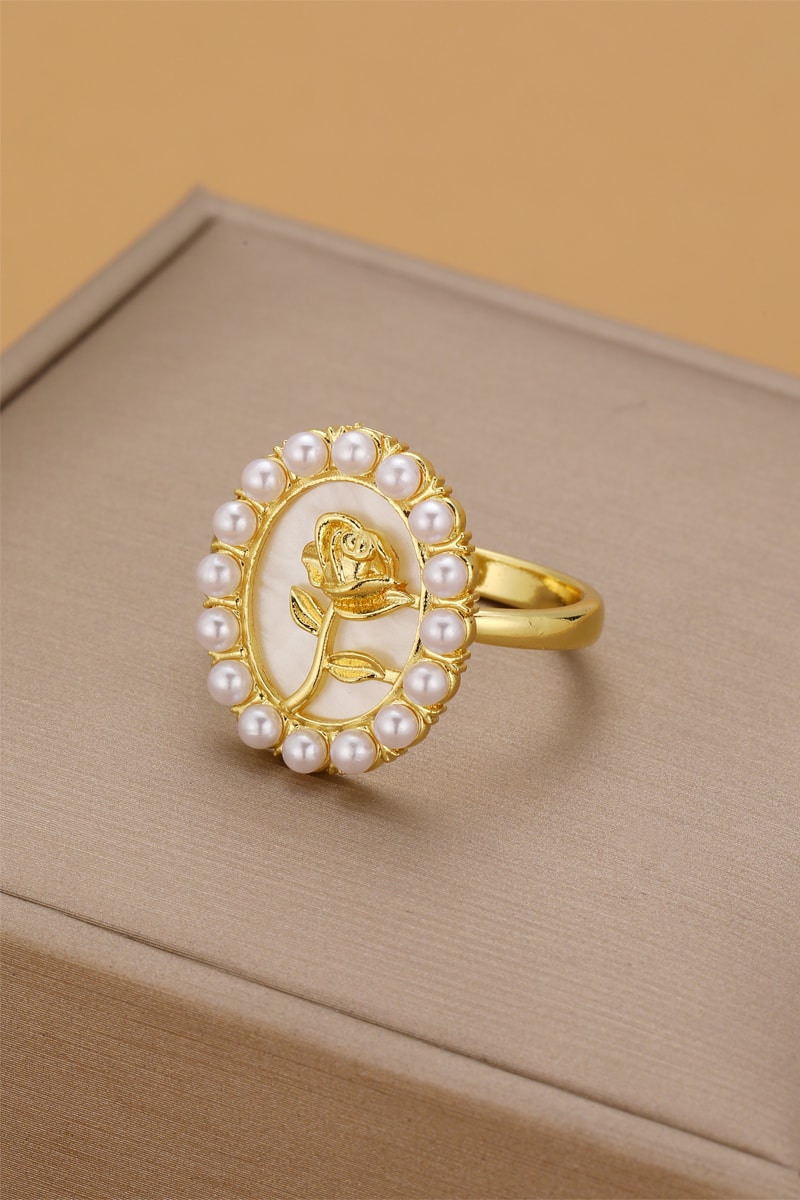 Bague en plaqué or jaune sertie de perles d'imitation.
