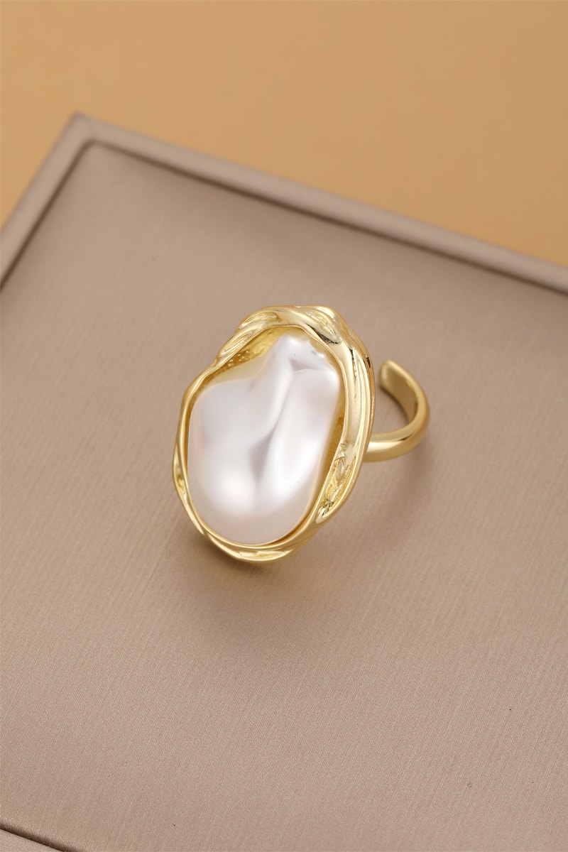Bague réglable en plaqué or jaunesertie d'une perle d'imitation.