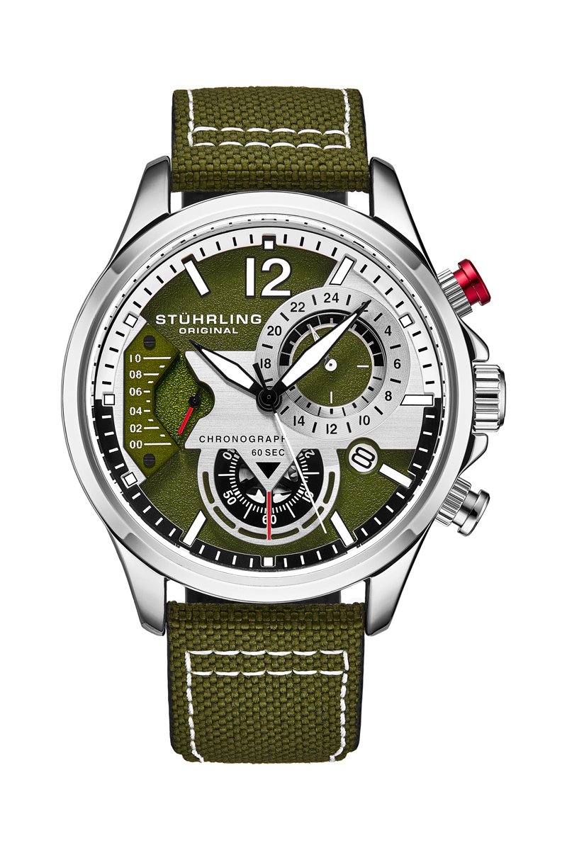 Montre à quartz en cuir et tissu Cordura - Chronographe - Vert