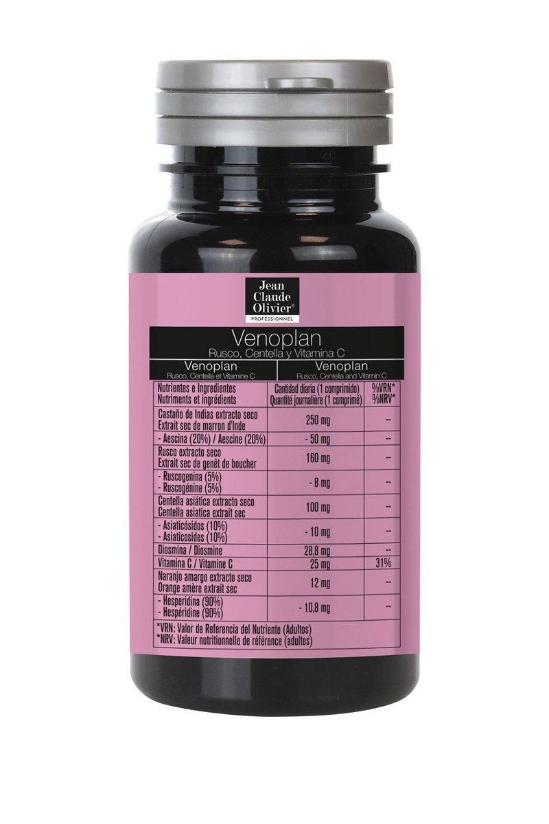 Ingrédients : agentes de carga (Celulosa microcristalina, Isomaltosa, Hidroxipropilcelulosa, Carboximetilcelulosa sódica), Castaño de Indias extracto seco (Aesculus hippocastanum L., semilla), Agente de carga (Fosfatos de calcio), Rusco extracto seco (Ruscus aculeatus L., raíz), Centella asiática extracto seco (Centella asiatica (L). Urban, parte aérea y hoja), Diosmina (al 90%), Vitamina C (L-ascorbato de sodio), Antiaglomerantes (Sales magnésicas de ácidos grasos de origen vegetal, Dióxido de silicio), Naranjo amargo extracto seco (Hesperidina 90%) (Citrus aurantium L., fruto).