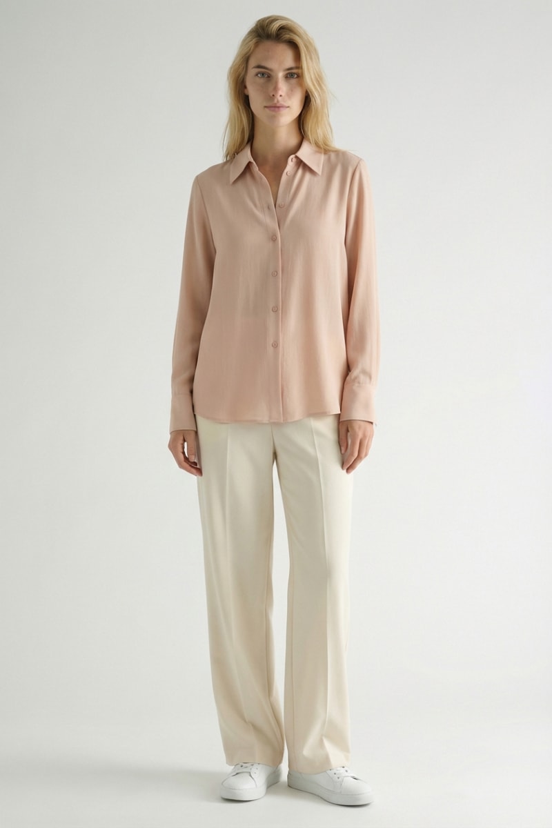 Chemise relaxed en soie de mûrier à manches longues.