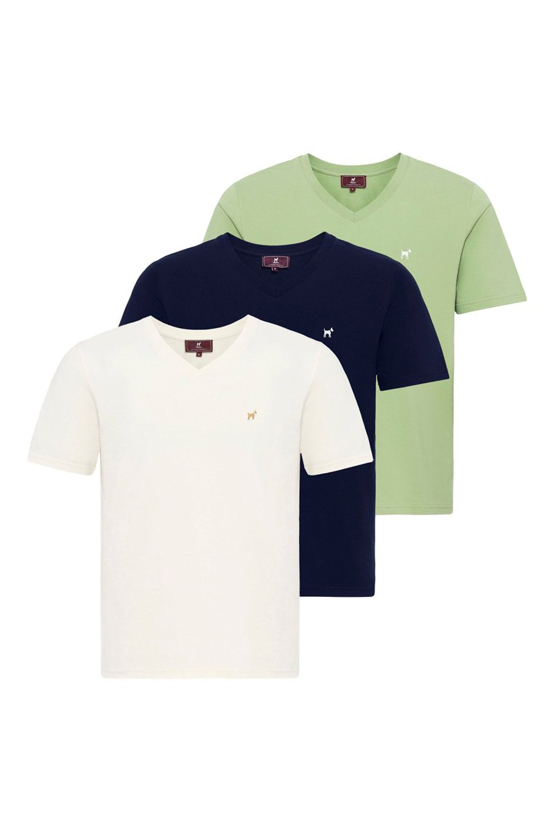 3 t-shirts - Blanc, bleu et vert