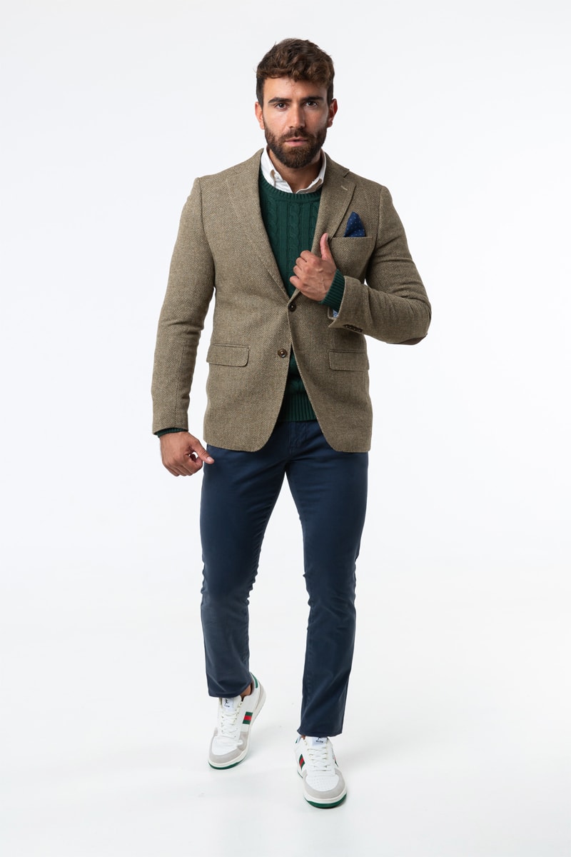 Blazer en laine à manches longues avec coudières.