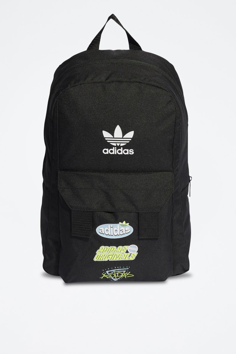 Poche zippée sous rabat avec empiècements, lettrage, motifs fantaisie et logo devant.
