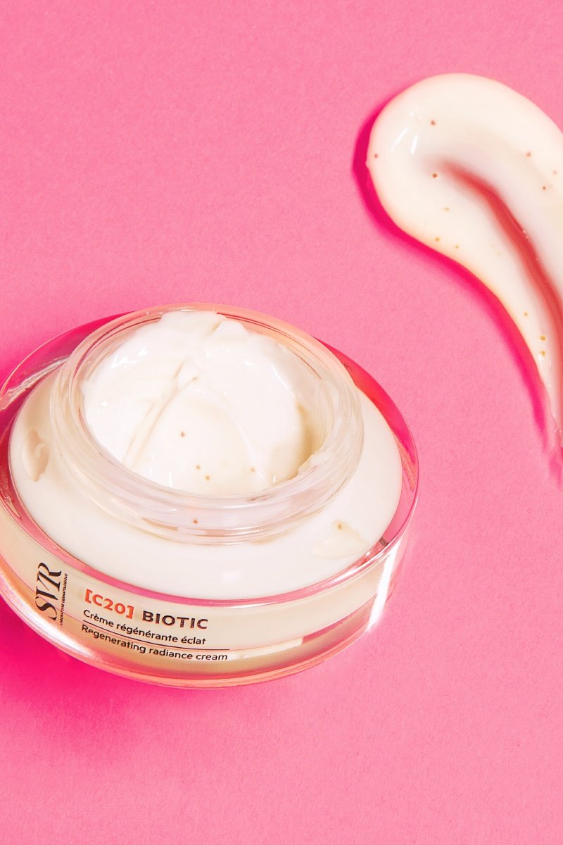 Régénérer votre peau grâce à une combinaison de 3 actifs essentiels à la fonction de la peau : des probiotiques pasteurisés, de la vitamine C stabilisée et de l’acide hyaluronique.