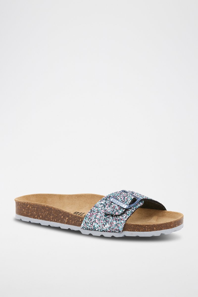 Mules pailletées.