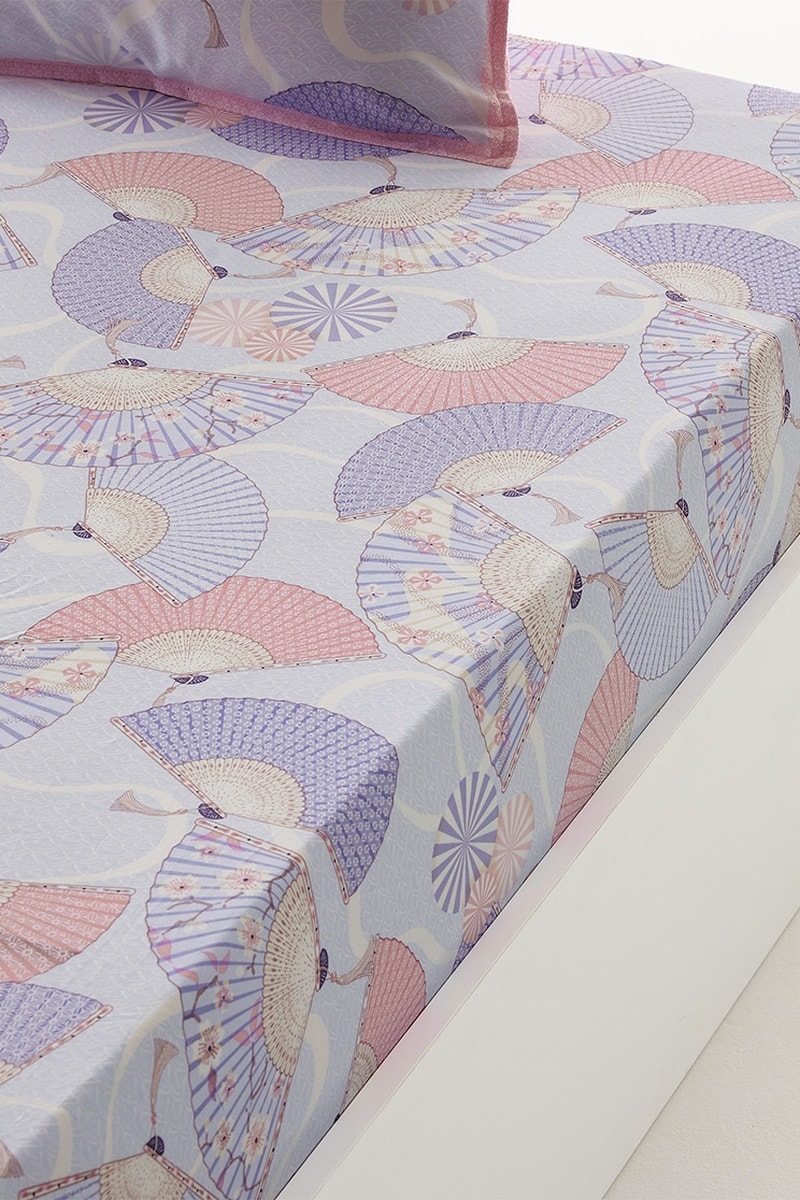 Drap-housse en coton Princesse aux éventails - 57 fils/cm² - Ciel
