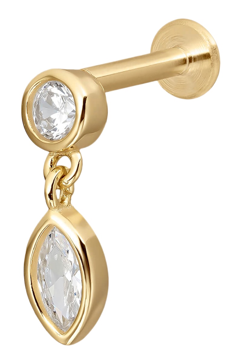 Piercing en argent plaqué or jaune serti de 2 zircones.