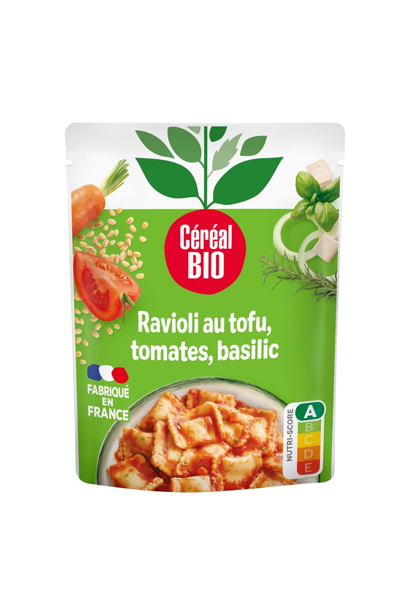 Doypack de raviolis farcis aux tomates, tofu et basilic.