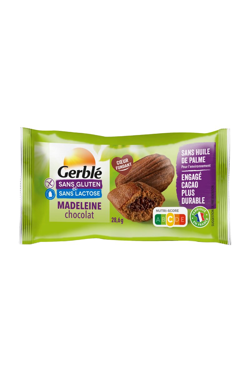 Madeleines à la farine de riz et au chocolat, fourrées au cacao, sans gluten et sans lactose, adaptées aux personnes intolérantes au gluten et/ou au lactose