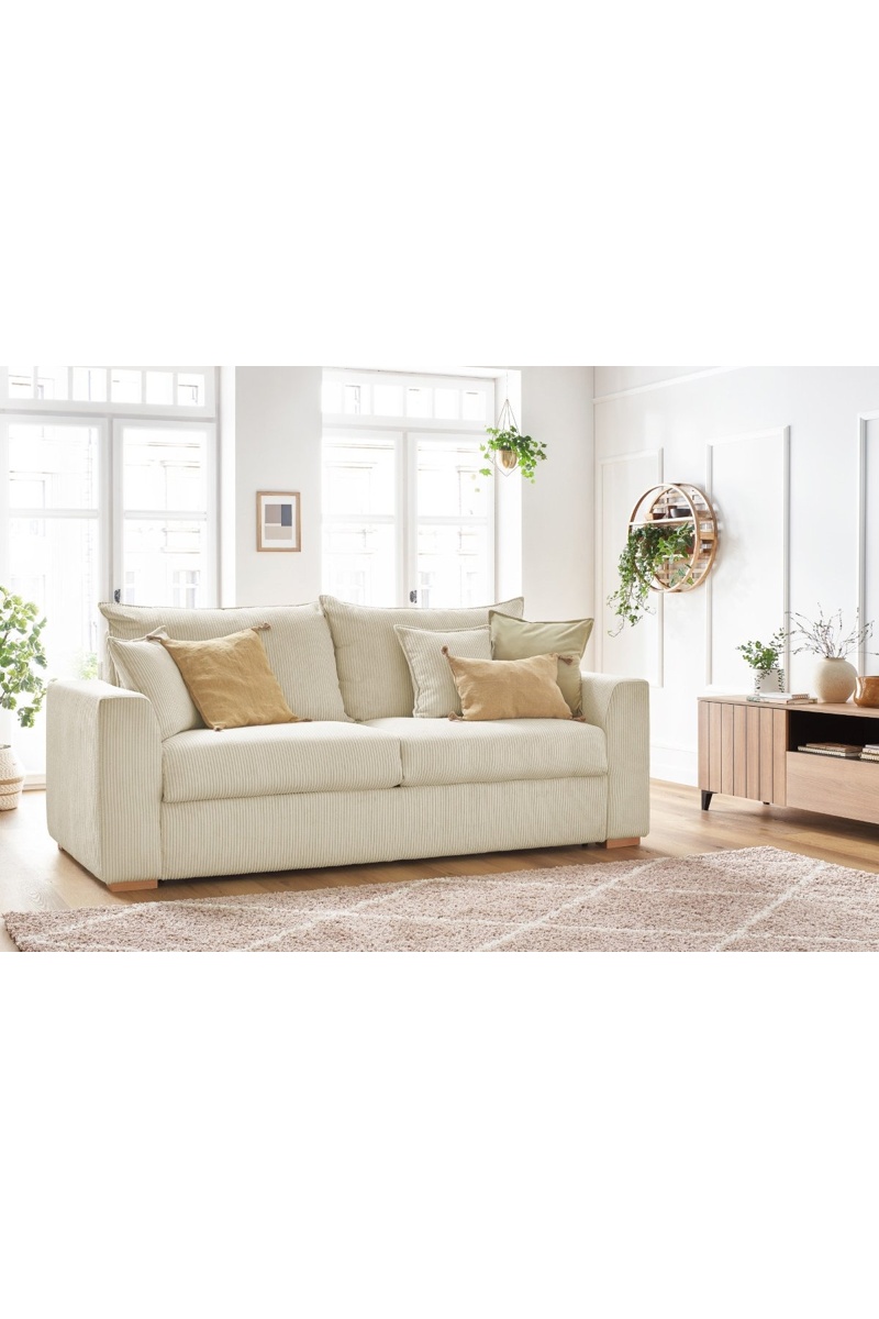 Canapé convertible Augustin - Beige - 3 places - En tissu velours côtelé