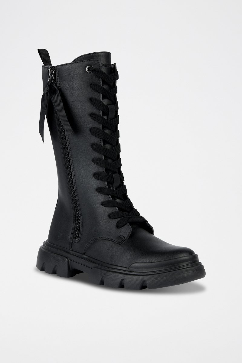 Fermeture à lacets devant et zippée sur le côté.