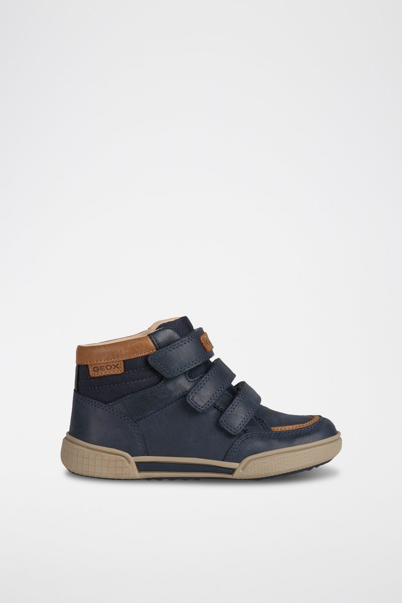Baskets montantes en cuir Poseido - Bleu marine et marron