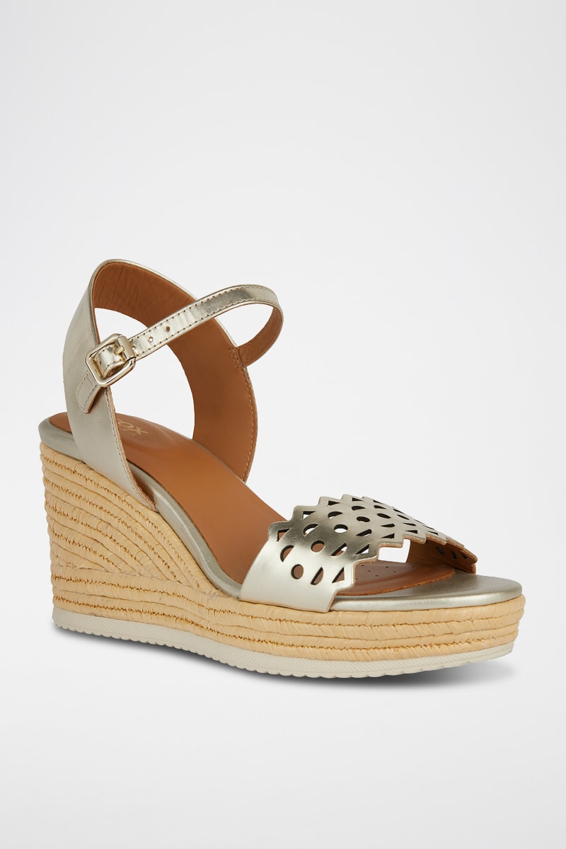Sandales à talons compensées en cuir.