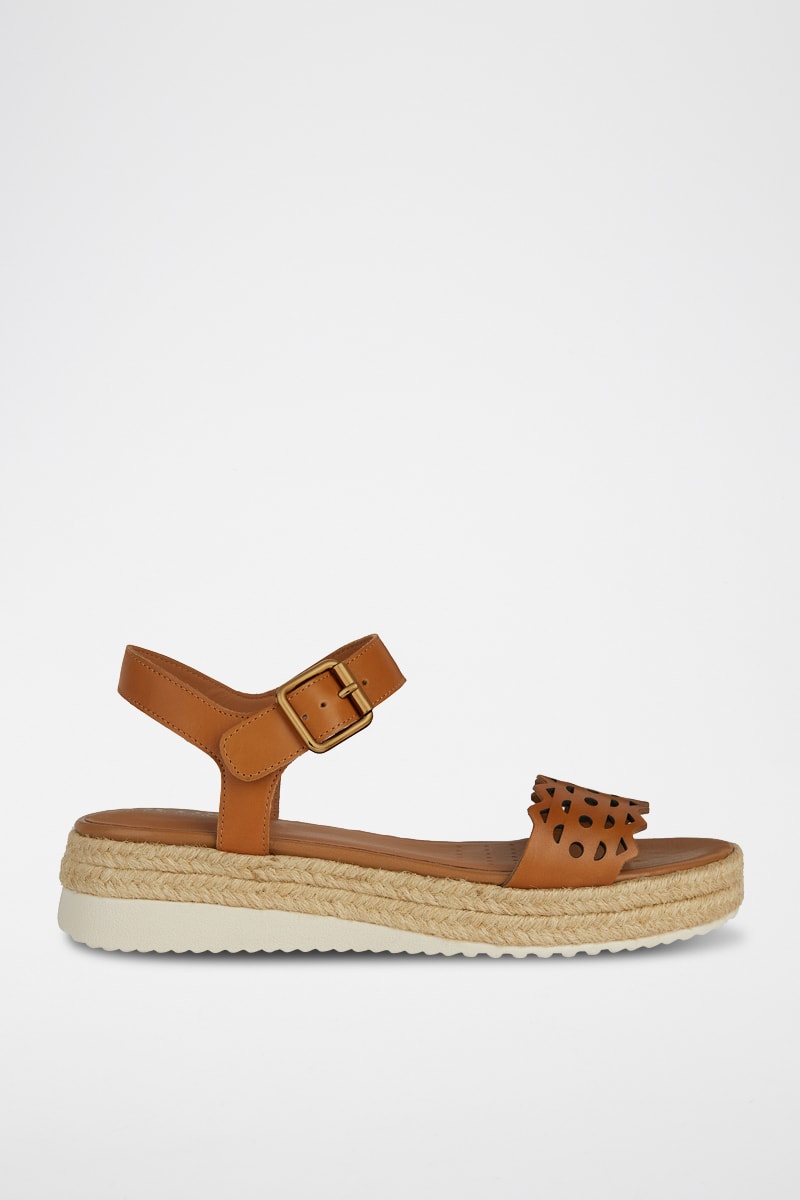 Sandales à talons compensées en cuir.