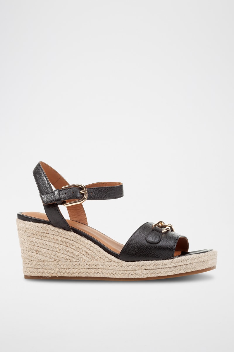 Sandales à talons compensées en cuir.