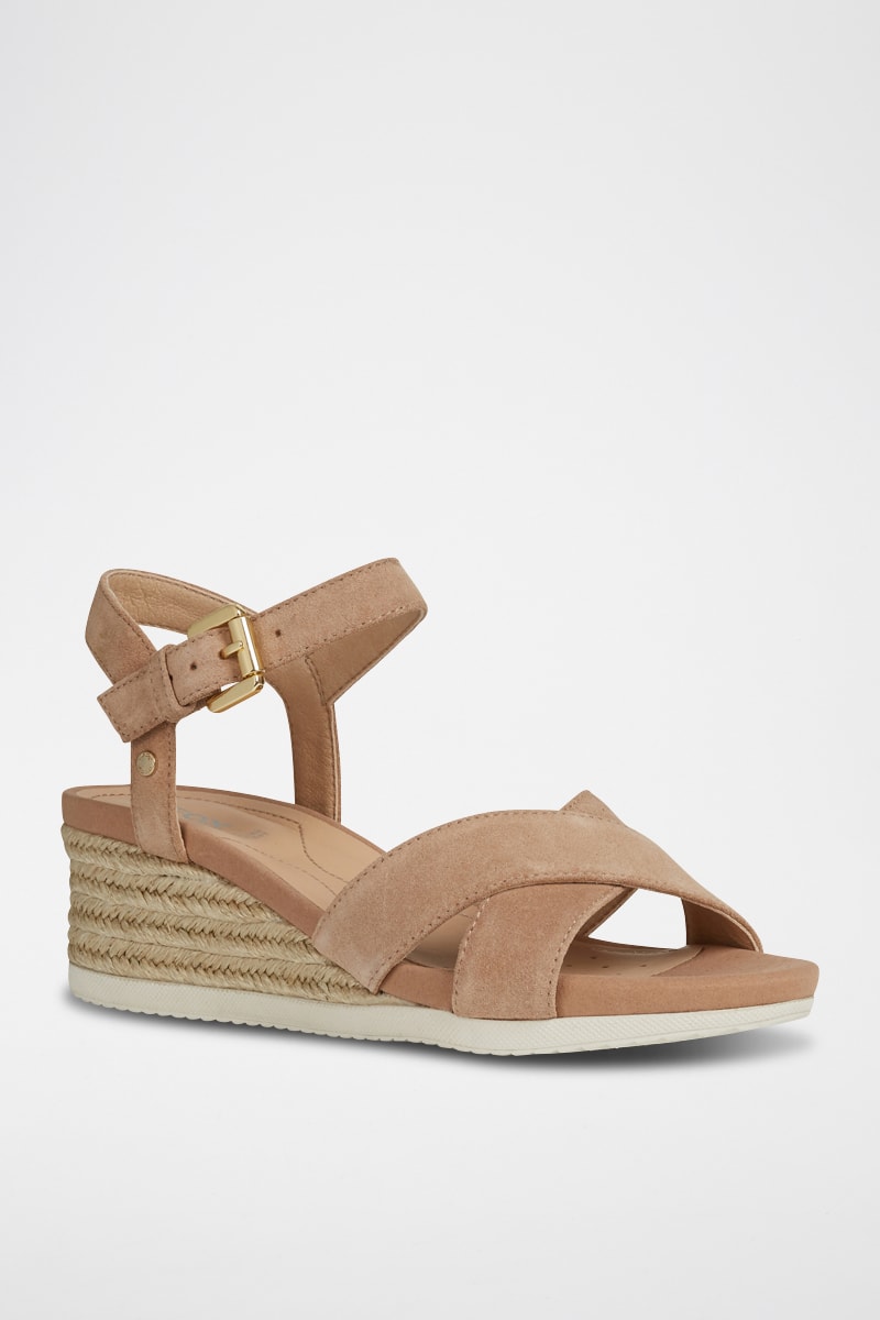 Sandales à talons compensées en nubuck.