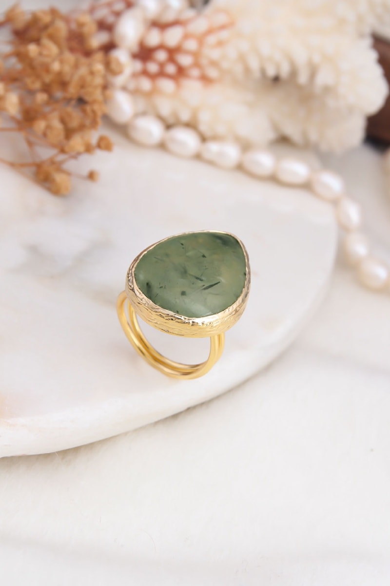 Bague - Plaqué or jaune et prehnite